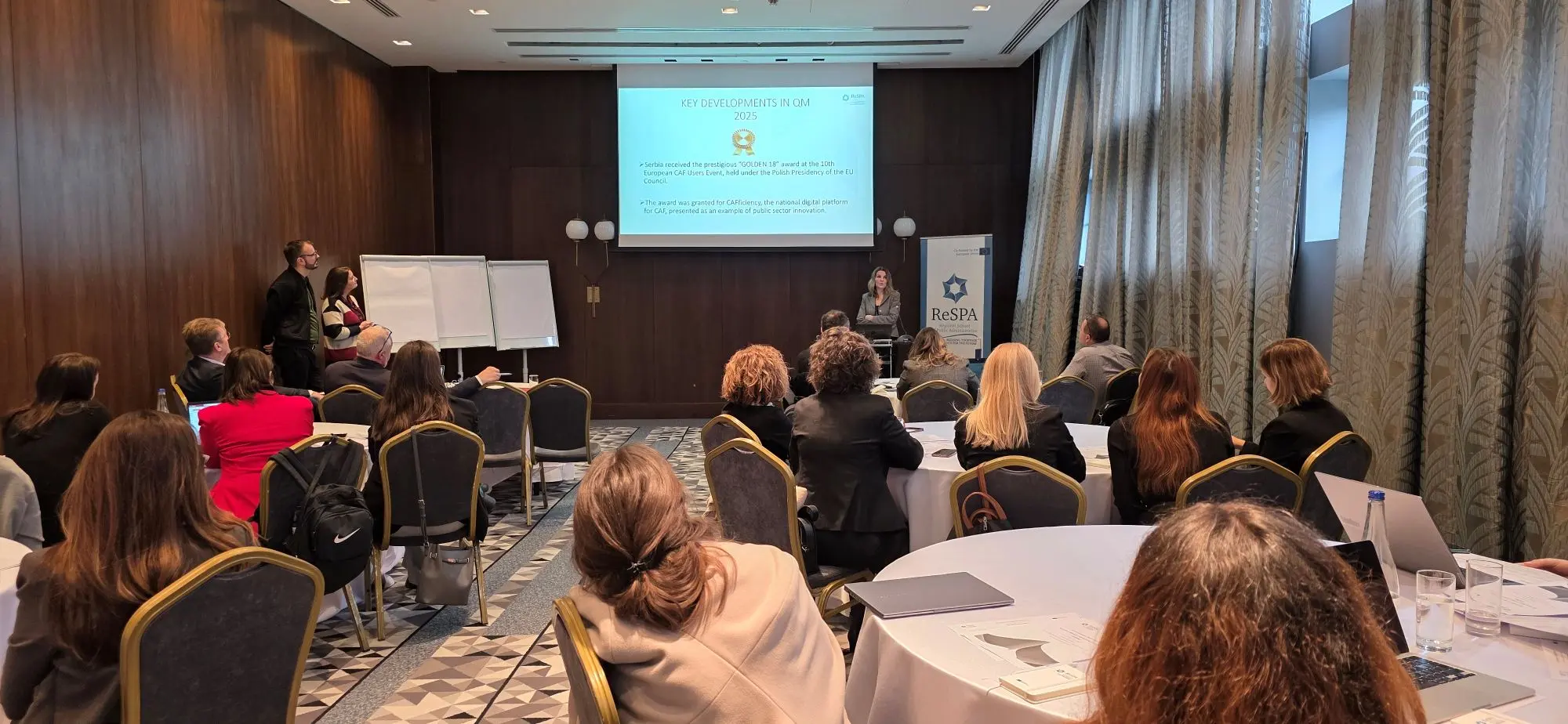 Поред учешћа Службе за управљање кадровима, скуп је окупио и представнике институција државне управе и стручњаке из области управљања квалитетом из региона Западног Балкана. Скуп је отворила Маја Хандијска Трендафилова, директорка РеСПА, која је истакла континуирани развој овог Центра, стално растући број институција које имплементирају CAF и којима је додељена CAF ознака, као и унапређење иновативних пракси управљања квалитетом. Овај састанак је одржан у значајном тренутку за реформске процесе у региону, имајући у виду нови грант Европске комисије додељен РеСПА-и, који додатно доприноси јачању регионалне сарадње и развоју система квалитета у државној управи.